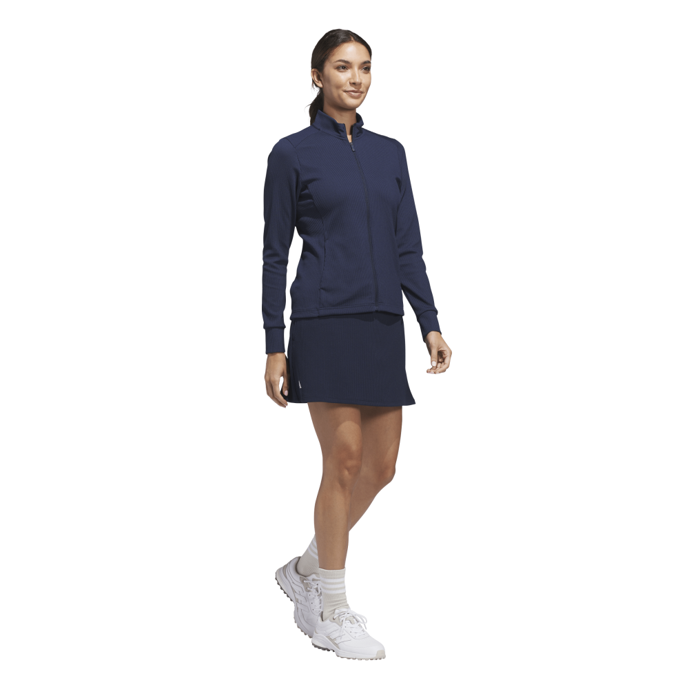Step up your style and game with the Adidas Women's Textured Jacket in Collegiate Navy. Designed for both the golf course and everyday adventures, this jacket offers a full zip for easy layering and a cozy high neck to keep the chills away. Its durable doubleknit fabric means you’re ready for whatever the day throws at you—whether it’s a sudden breeze or a friendly challenge. Play it cool and comfortable with a jacket that’s as versatile as your swing.