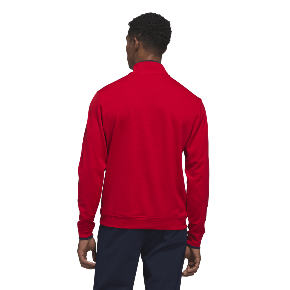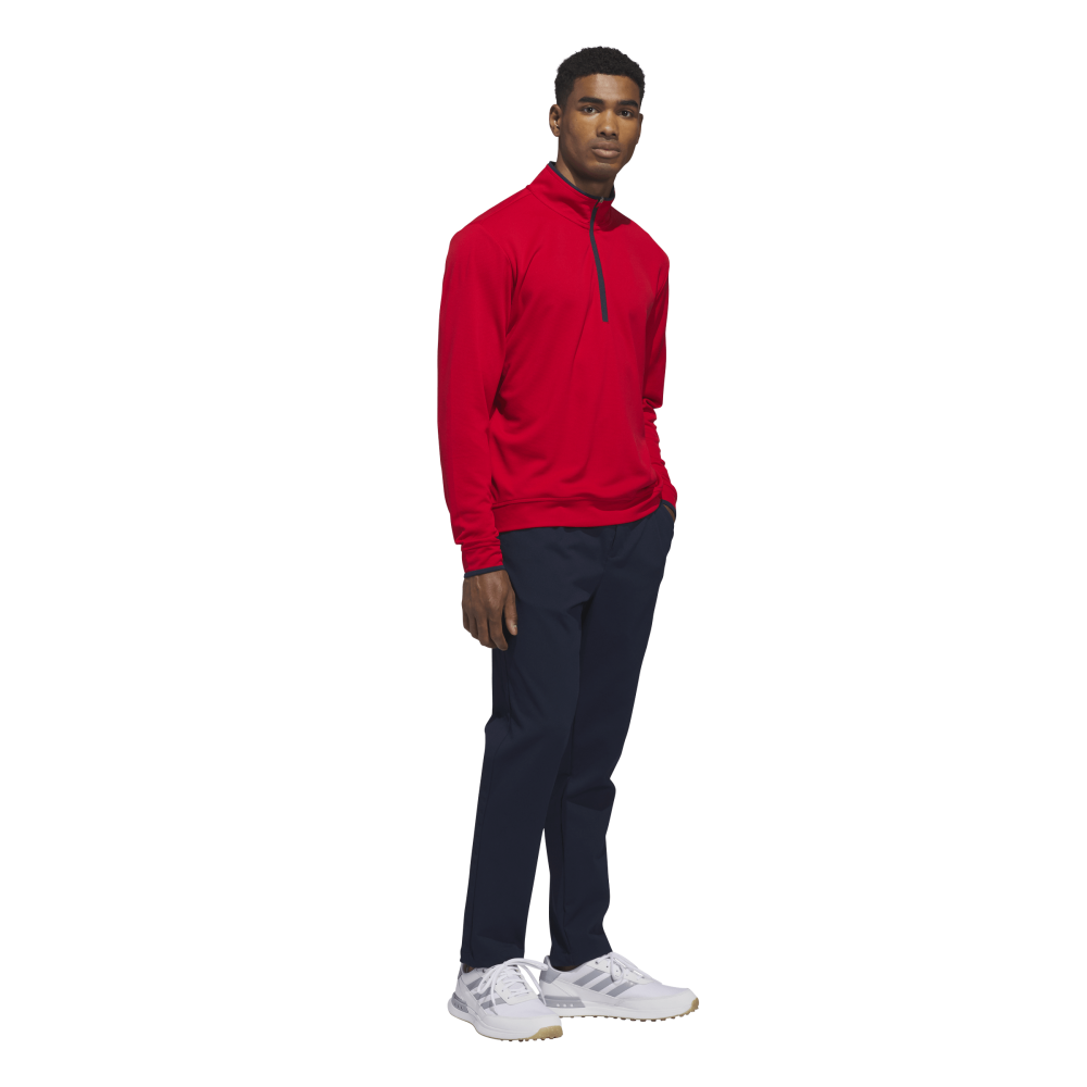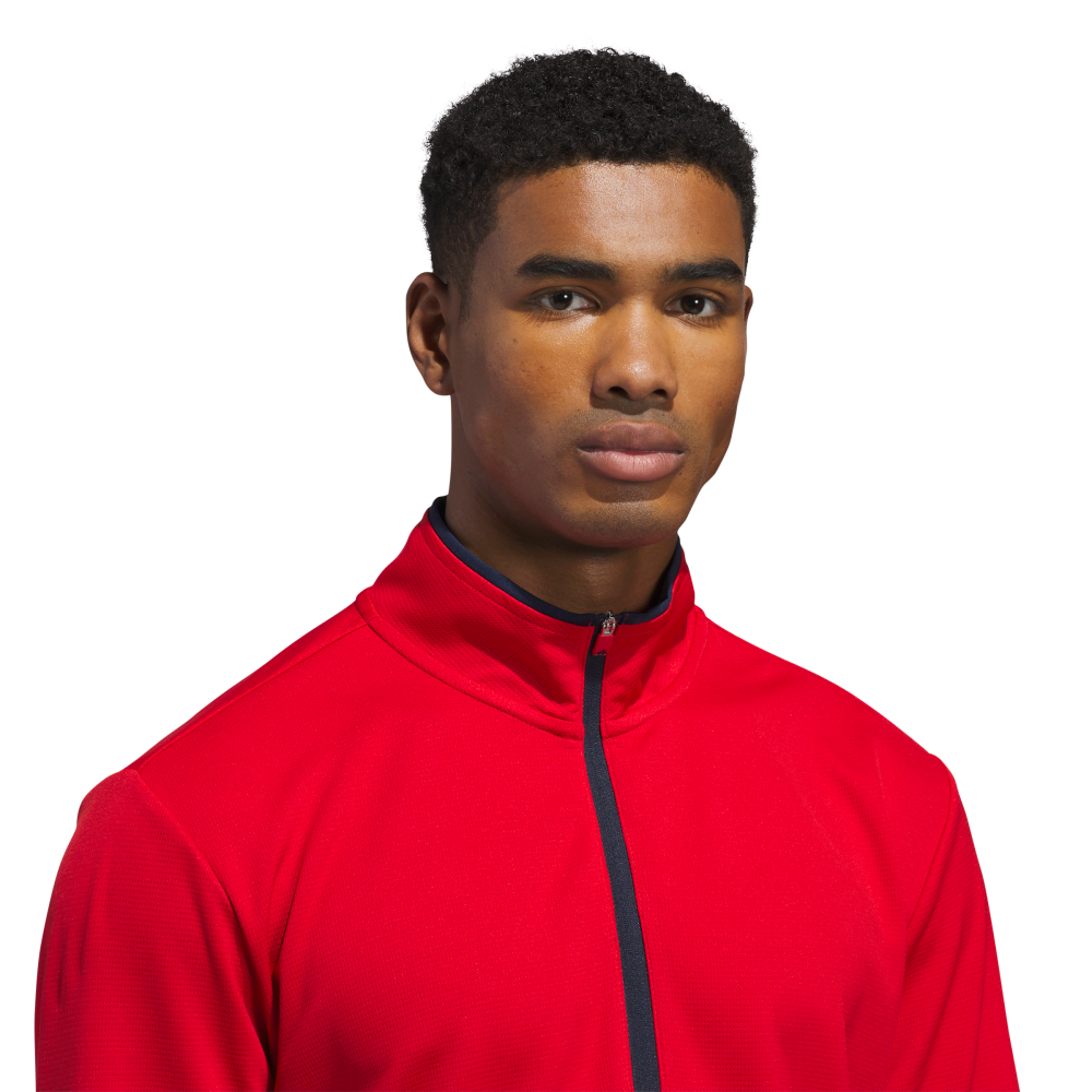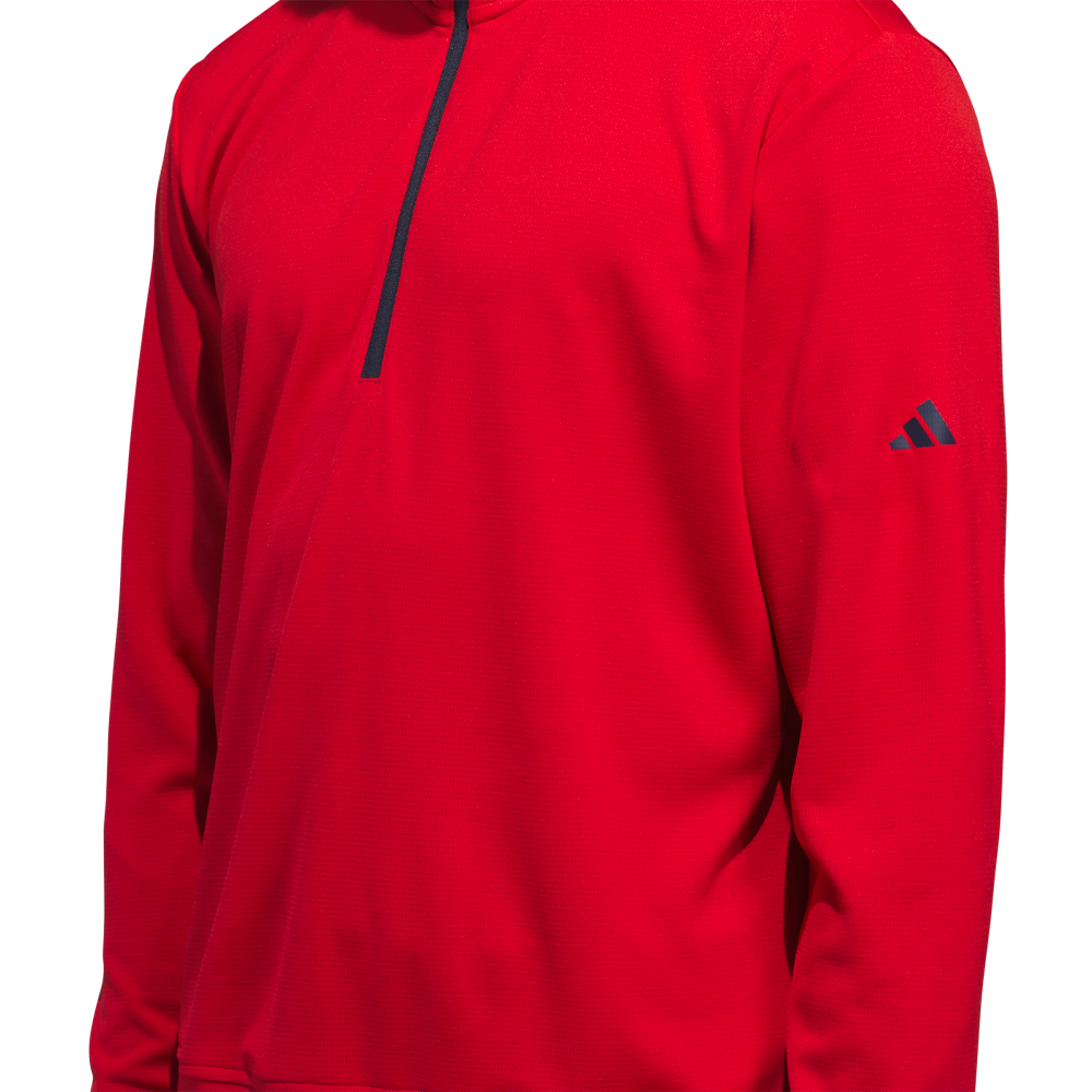 Stay cool and swing freely in the Adidas Men's Lightweight 1/4 Zip in Collegiate Red. This half-zip top lets you adjust your airflow as your game heats up, while its soft, double-knit fabric moves with you for every perfect swing. Plus, it's crafted entirely from recycled materials, so you can feel good about your style and your footprint on the course.