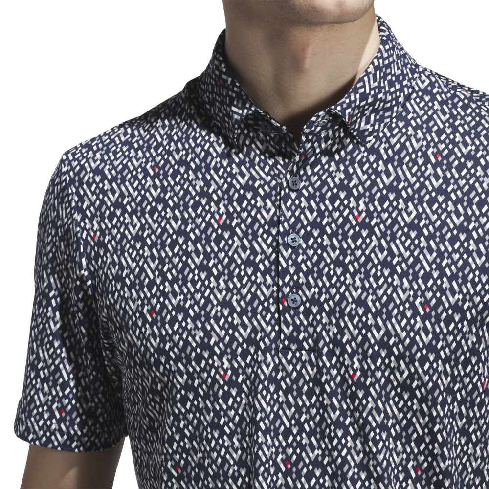 Step up your golf game with the Adidas Men's Micro Argyle Polo in Collegiate Navy/White. This playful polo combines a classic argyle print with soft interlock knit for comfort that keeps up with your swing. Its regular fit and built-in stretch let you move freely—from powerful drives to smooth putts—while looking sharp on the course.
