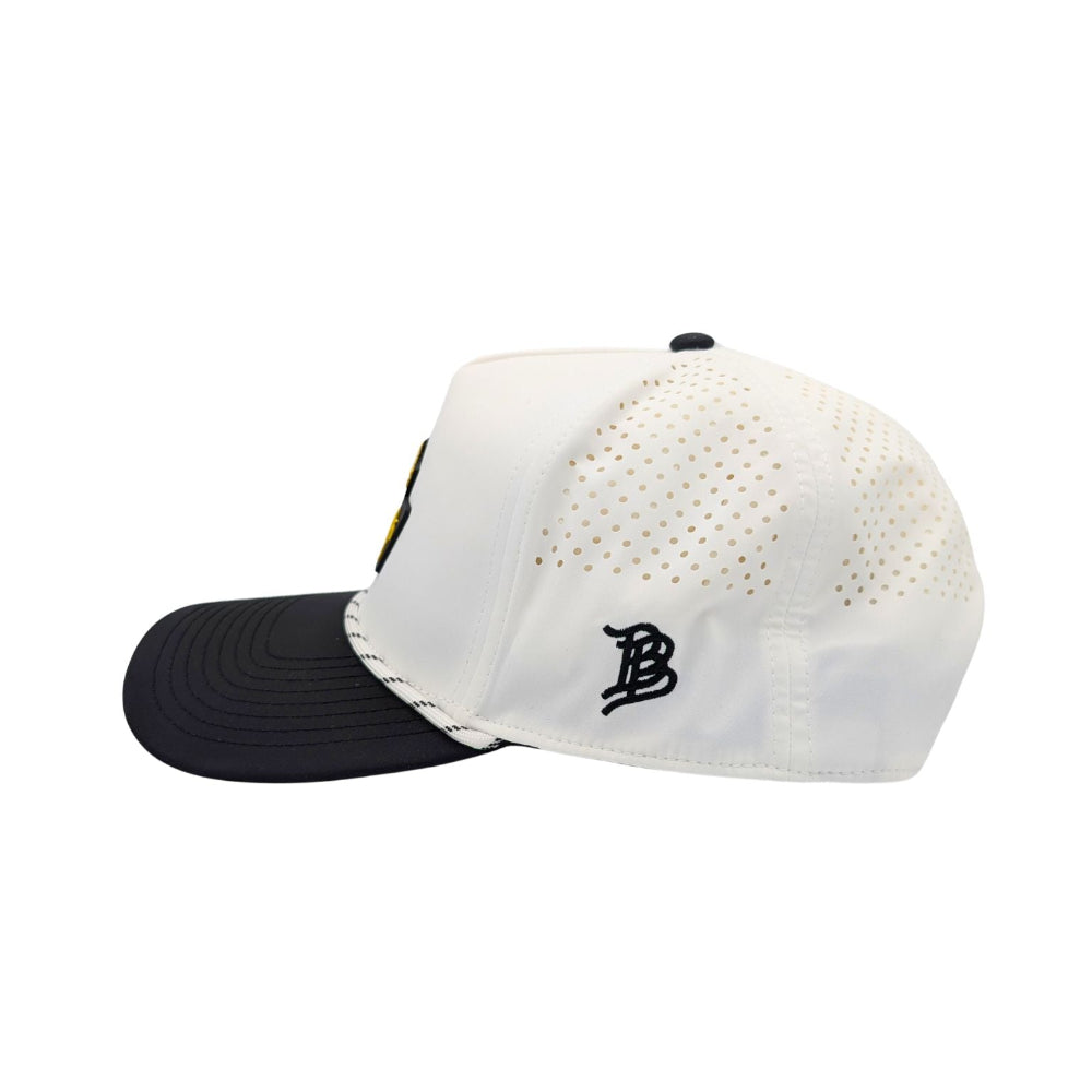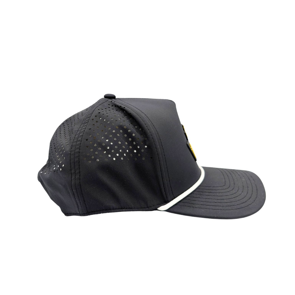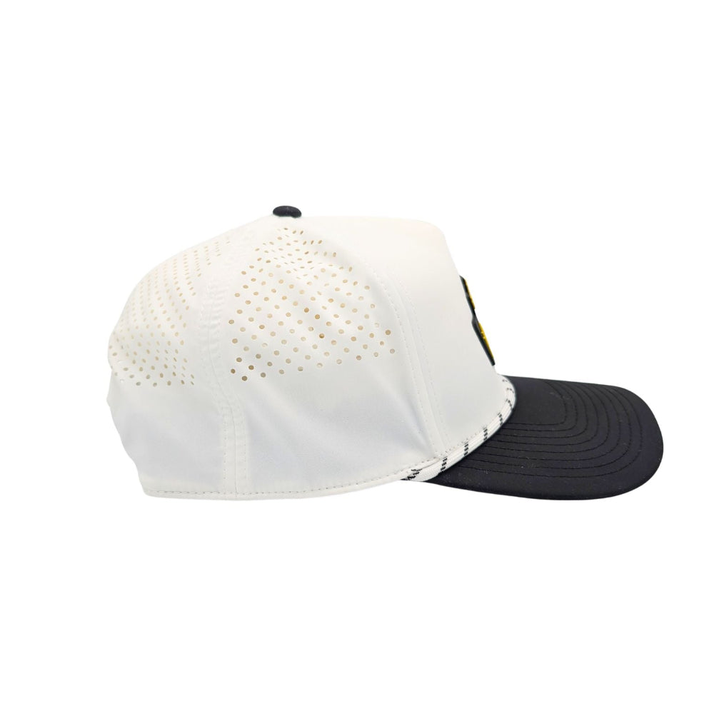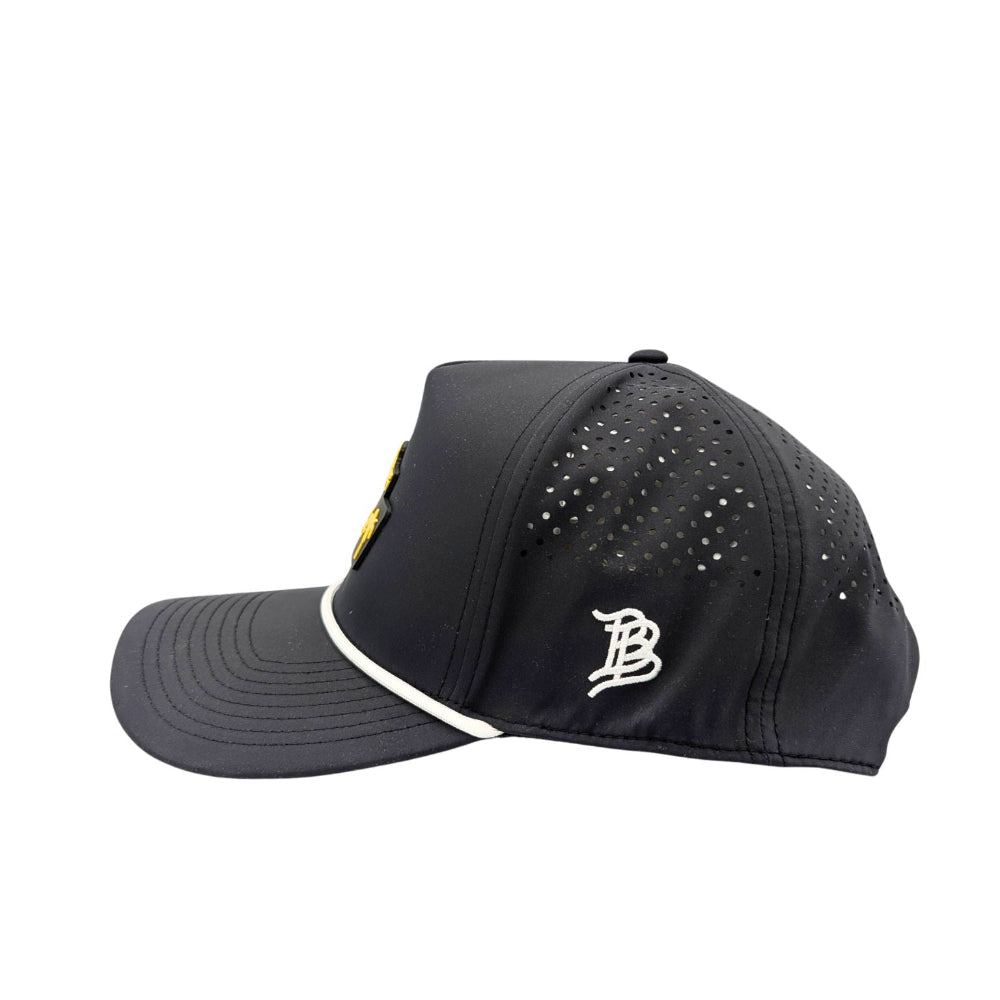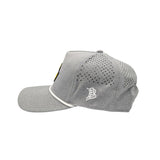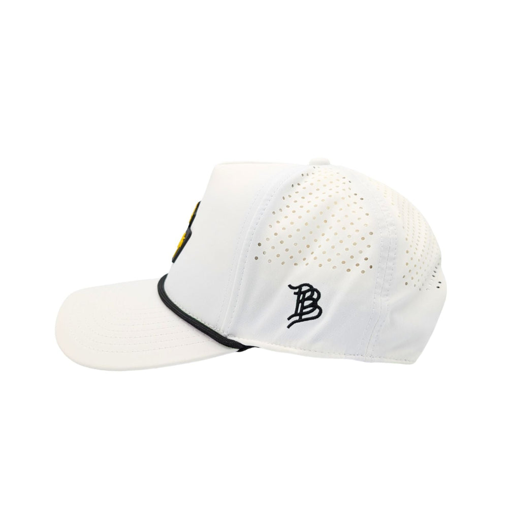 This throwback rope hat delivers vintage style with serious performance built in. Crafted from Branded Bills’ lightest performance fabric, it’s water repellent, moisture wicking, and finished with laser-perforated panels to keep airflow moving when the heat turns up. With UPF 50+ sun protection, a structured high crown, curved bill, stretch-enhanced comfort, and adjustable snapback closure, it’s ready for everything from early tee times to late clubhouse hangs.