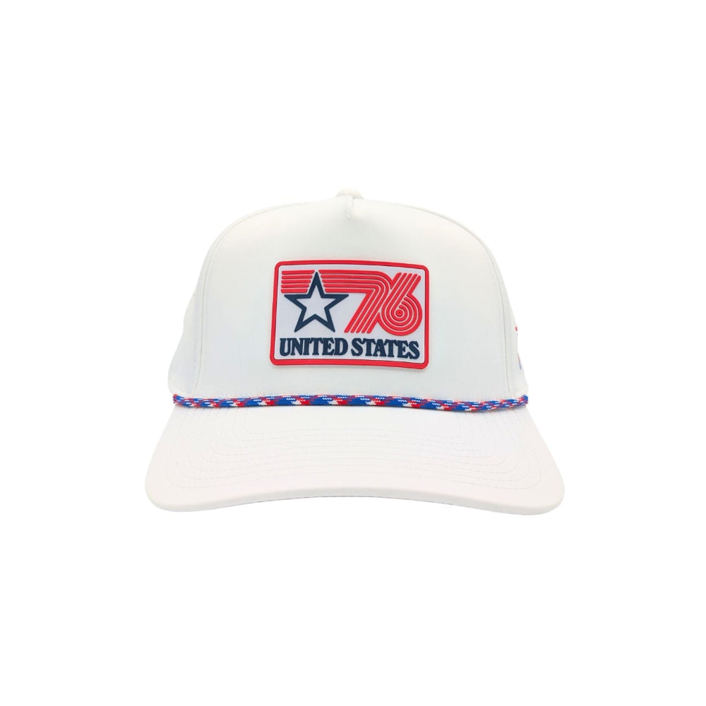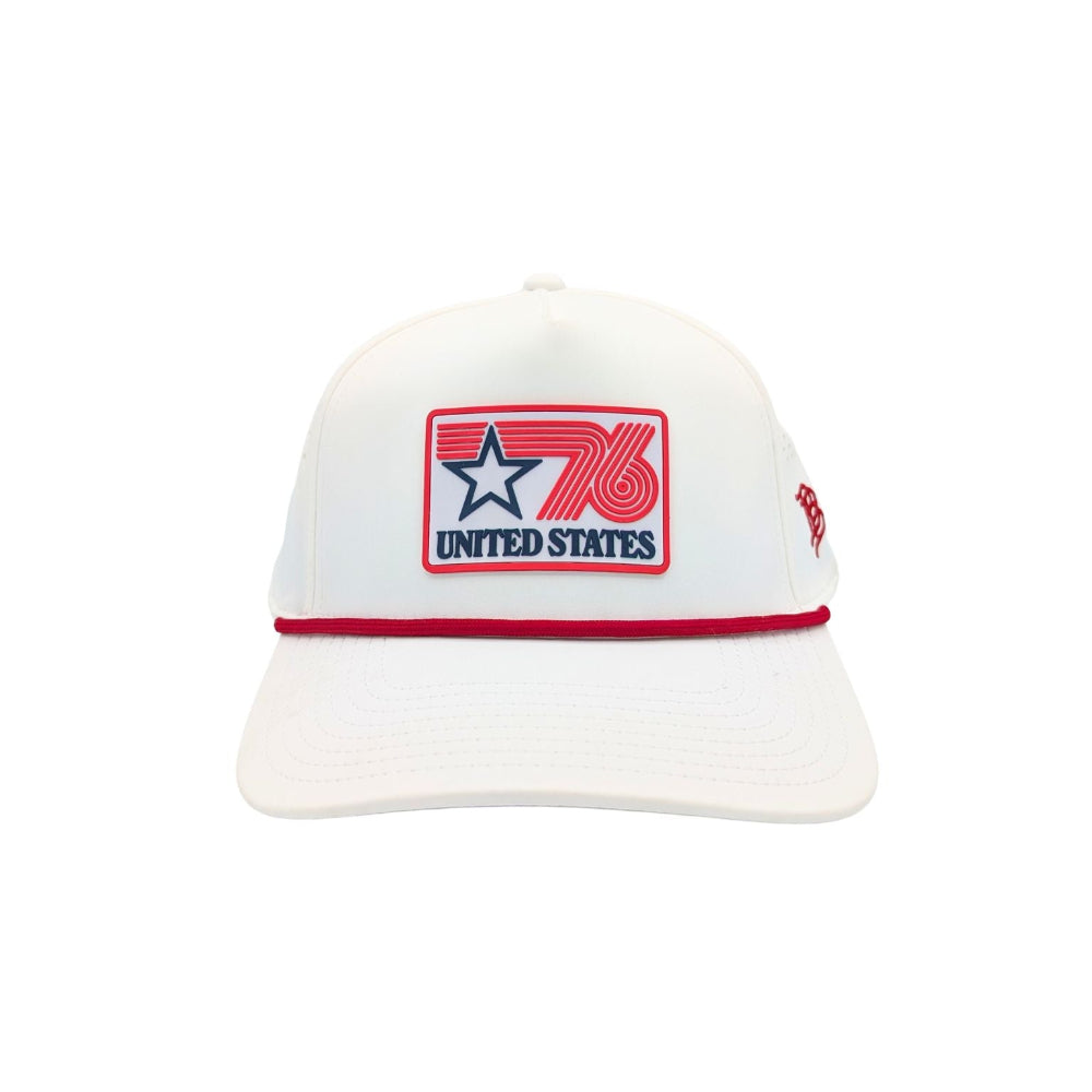 Celebrate classic Americana on and off the course with the Branded Bills US 76 Star Snapback Rope Hat, created exclusively for Austad’s Golf. Featuring 76 in a retro font, a bold star, and United States proudly displayed below. This hat brings patriotic flair to a timeless throwback golf style. The rope accent around the brim adds that vintage touch that golf lovers crave, making it perfect for first tees, cart rides, or just showing off your love for the red, white, and blue.