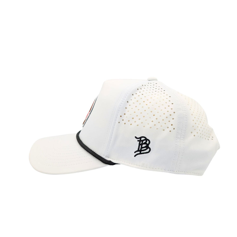 Made from Branded Bills’ lightest performance fabric, this snapback is as functional as it is stylish. Moisture-wicking panels and laser-perforated vents keep you cool during intense rounds, while water repellency protects against morning dew or surprise showers. UPF 50+ sun protection shields your face and scalp from harsh rays, and the stretch fit, curved bill, high crown, and adjustable snapback closure deliver all-day comfort. It’s clear this is Austad’s-exclusive—you won’t find this design anywhere else.