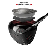 A first-of-its-kind driver face construction combining ultra-thin titanium, poly mesh, and carbon fiber for explosive speed and impressive forgiveness — even on off-center strikes.