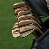 The Titleist Limited Edition T150 Oil Can Irons bring one of the most iconic finishes in golf to the T-Series lineup for the very first time. Inspired by the legendary Oil Can finish made famous by Vokey Design wedges, this limited-edition release features a rich copper-toned PVD treatment that delivers a bold, tour-inspired look while maintaining long-lasting durability.