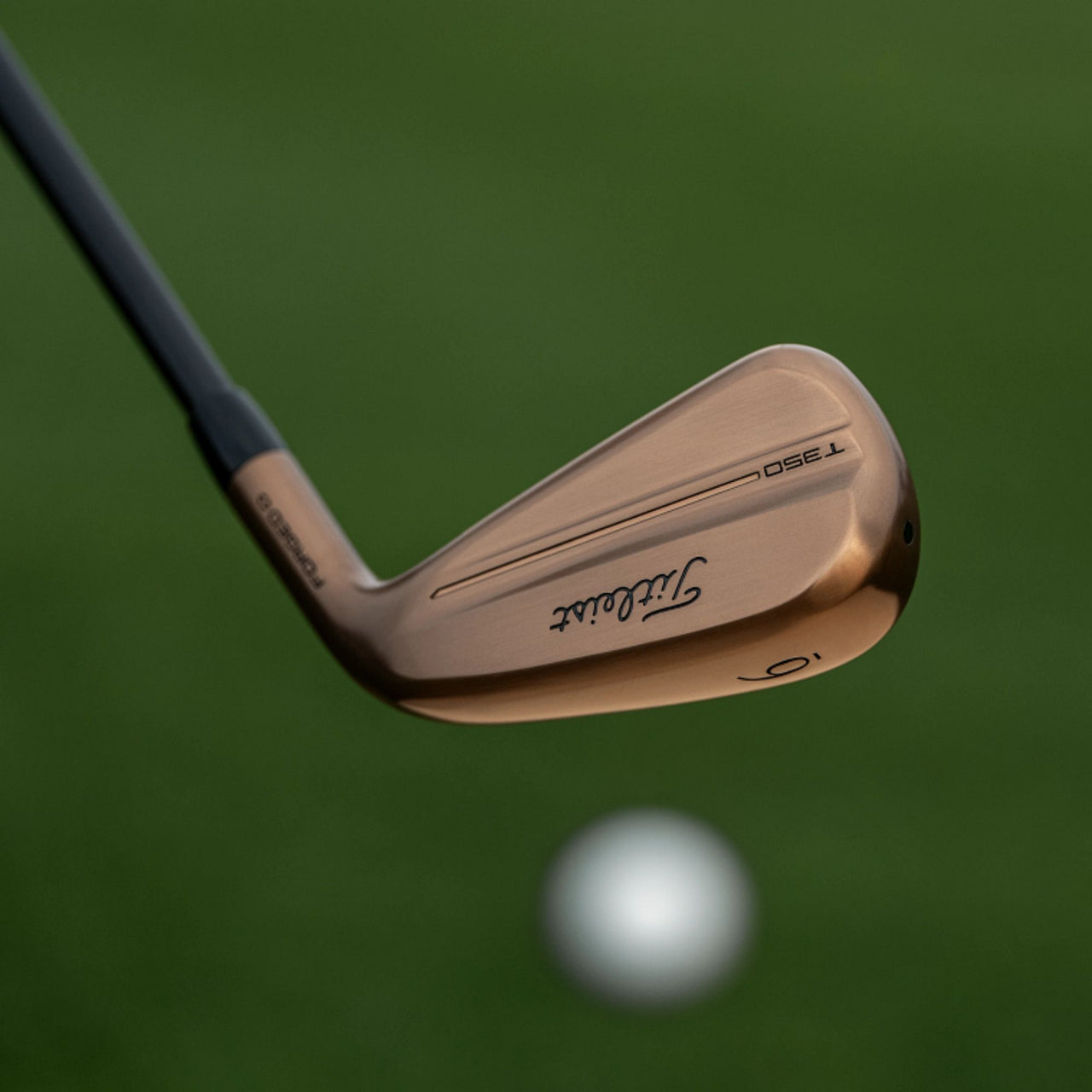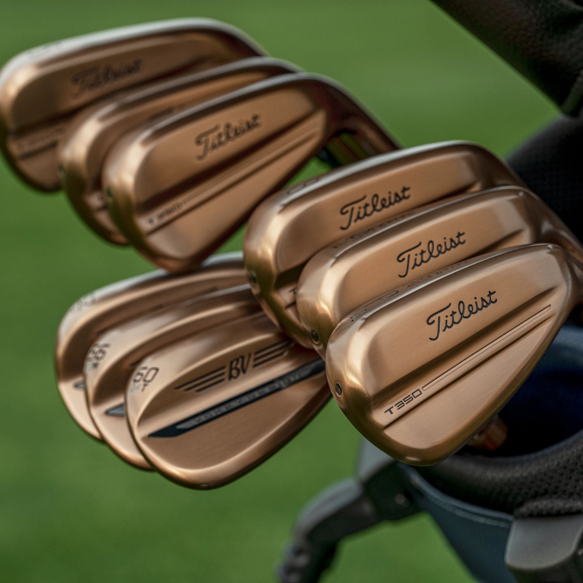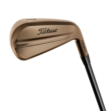 The Titleist Limited Edition T350 Oil Can Irons combine maximum distance and forgiveness with one of the most striking finishes Titleist has ever released. Inspired by the legendary Oil Can finish made famous by Vokey Design wedges, this special edition features a rich copper-toned PVD treatment that gives the irons a bold, tour-inspired look while maintaining long-lasting durability.
