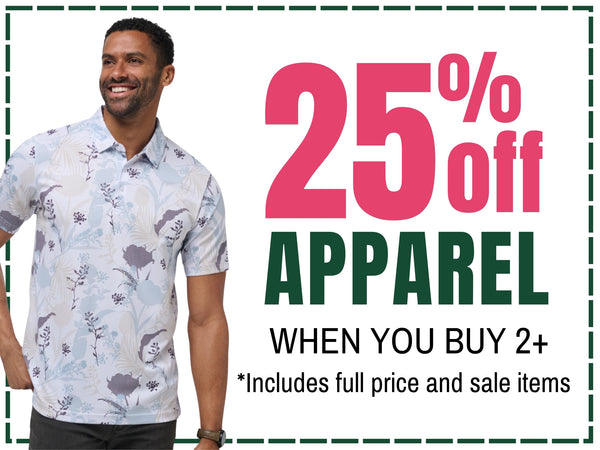 Stock up and look the part—25% off apparel when you buy 2+ items. Because style matters on Sunday. (FootJoy excluded online)