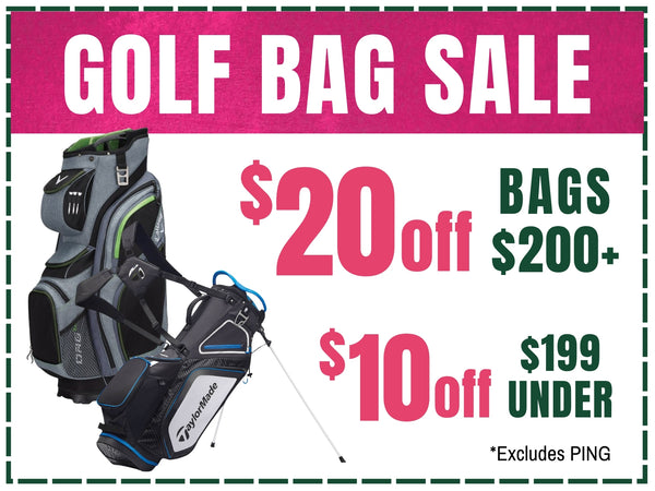 Upgrade your setup for the season—$20 off bags $200+ or $10 off bags $199 & under. Give your clubs a home worthy of Augusta. (Excludes PING)