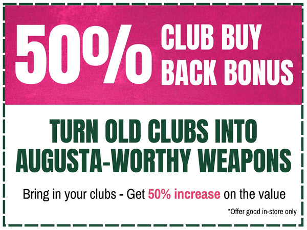 Turn your old clubs into Masters-worthy upgrades—get a 50% bonus in store credit and bring some serious firepower to your bag.