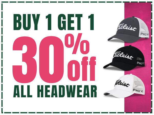 From first tee to final putt, stay shaded in style—buy one, get one 30% off all headwear. Because every Masters outfit starts at the top.