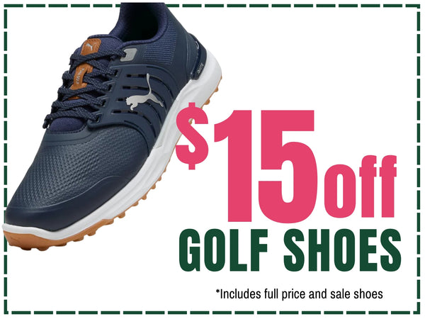 Step into comfort and confidence—$15 off golf shoes to keep your footing steady from tee to green. (FootJoy excluded online)