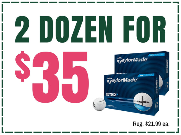 Go low without losing balls—2 for $35 on TaylorMade Distance+. Long, straight, and ready for your Sunday charge.