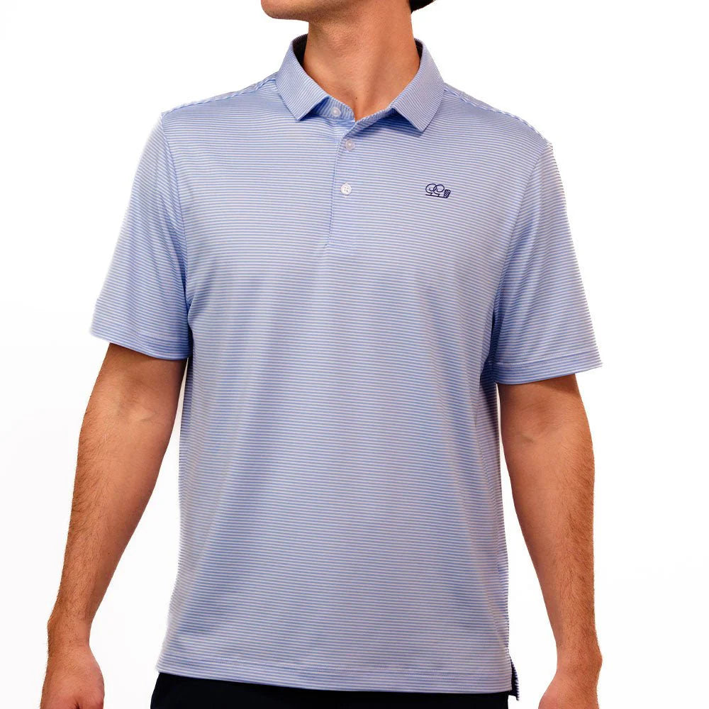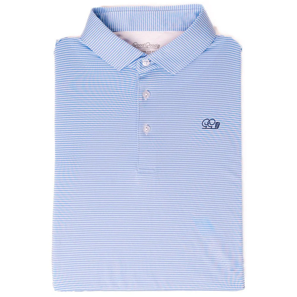 Tee off in style with the Good Good Men's Birdie Blue Polo 25. Its knitted 4-way stretch allows for unrestricted movement during your swing while the structured collar maintains a sharp look. Stay cool and dry with moisture wicking fabric and UPF 50+ protection. Made from a super soft and durable polyester/spandex blend. (Fore real, it's an athletic fit!)